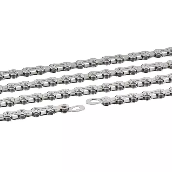 La catena Connex 11s8 11V 118 maglie è una catena silenziosa e veloce ad alte prestazioni. È la catena perfetta per i ciclisti più ambiziosi. È testata al 100%, una catena che garantisce una protezione ottimale contro la corrosione. Il suo aspetto è evidenziato da pin di potenza dorate.