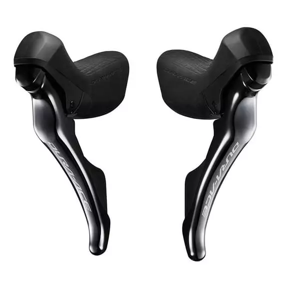 Comandi del cambio Shimano Dura-Ace ST-R9150 11x2v. elettronico DI2 con miglior controllo e sicurezza durante la competizione. Sistema di freni equilibrati perfettamente per la competizione. Funzionamento più intuitivo e veloce con una sensazione di scatto più definita. Funzione personalizzabile per adattarsi a tutti gli stili di guida. Tutti gli interruttori hanno l’opzione di cambio multiplo o scollegato. Ottima trasmissione di potenza con una presa stabile.