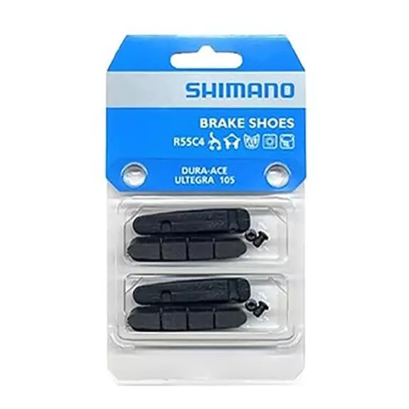 Coppia pattini Shimano Dura-Ace BR-9000 R55C4 per freni a ponte, con montaggio diretot o cantilever. Pattini standard per cerchi in alluminio.